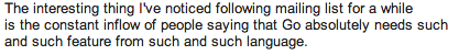 The first HN thread about Go was mostly an argument about braces and indentation.